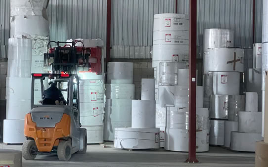DEMKA Depolama hizmetlerimize özel tahsis edilmiş alanda Bobin Kağıt ve Siparişi oluşturulmuş Üretimi tamamlanmış ürünlerin
